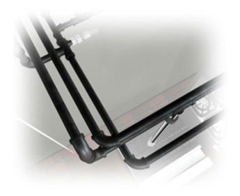 The system agent distribution piping can utilize black iron pipe, chrome plated, or stainless steel pipe and fittings. It is pre-engineered to a specific system design and assembled according to standard code guidelines. The agent distribution piping system carries the PRX® Liquid Agent and water or the ANSULEX Low PH Liquid Agent from the ANSUL AUTOMAN to the nozzles for discharge.