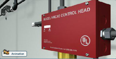 mounted directly to the agent tank or remotely mounted allowing for simultaneous actuation to a series of tanks or a larger system. When a fire is detected, and the fusible link has separated or manual pull used, one of the cables attached to the Mechanical Control Head releases tension. This causes the gas supply to shut-off and the release of CO2 initiating agent discharge.